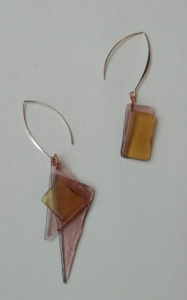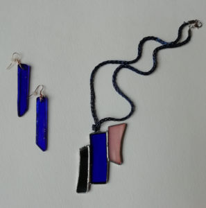 Verre fusing en boucle d’oreilles & pendentif en soudure vitrail Tiffany, oeuvre originale, exemplaire unique.