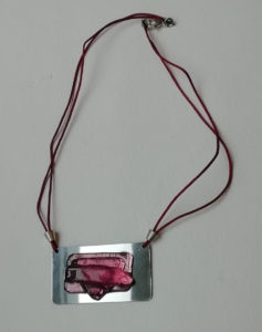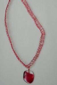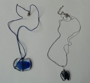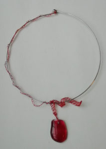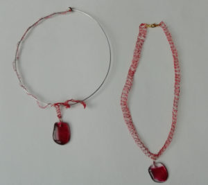 Verre fusing sur colliers en fil de fer crocheté, oeuvres originales, exemplaires uniques.