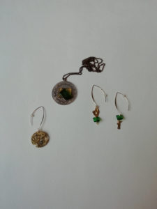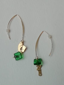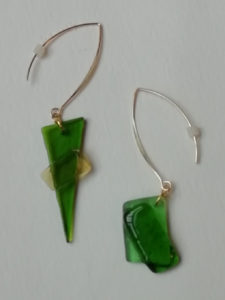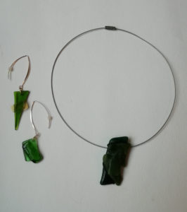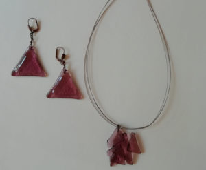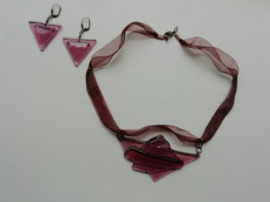 Cristal fusing en boucle d’oreilles & pendentif, oeuvre originale, exemplaire unique.