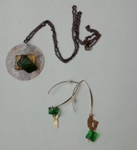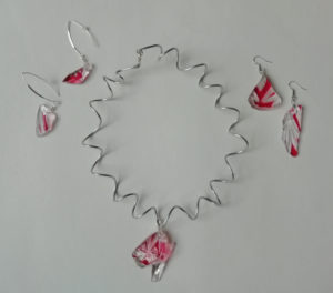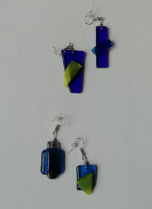 Verre fusing en boucle d’oreilles & pendentif, oeuvre originale, exemplaire unique.