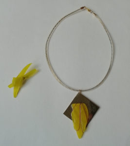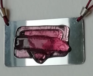 Verre fusing monté en broche & pendentif sur plaque laiton, oeuvre originale, exemplaire unique.