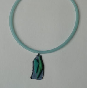 Verre fusing sur collier en silicone, oeuvre originale, exemplaire unique.