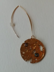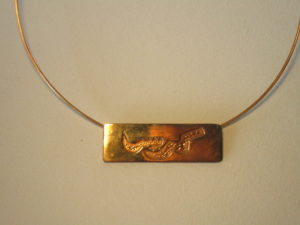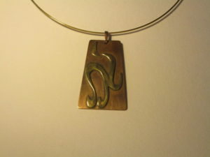 Pendentif similor et cuivre riveté, oeuvre originale, exemplaire unique.