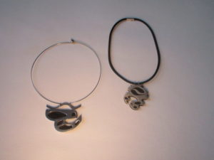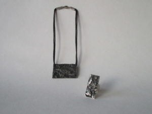 Pendentif et bague coulée en argent d’après empreinte, oeuvre originale, exemplaire unique.